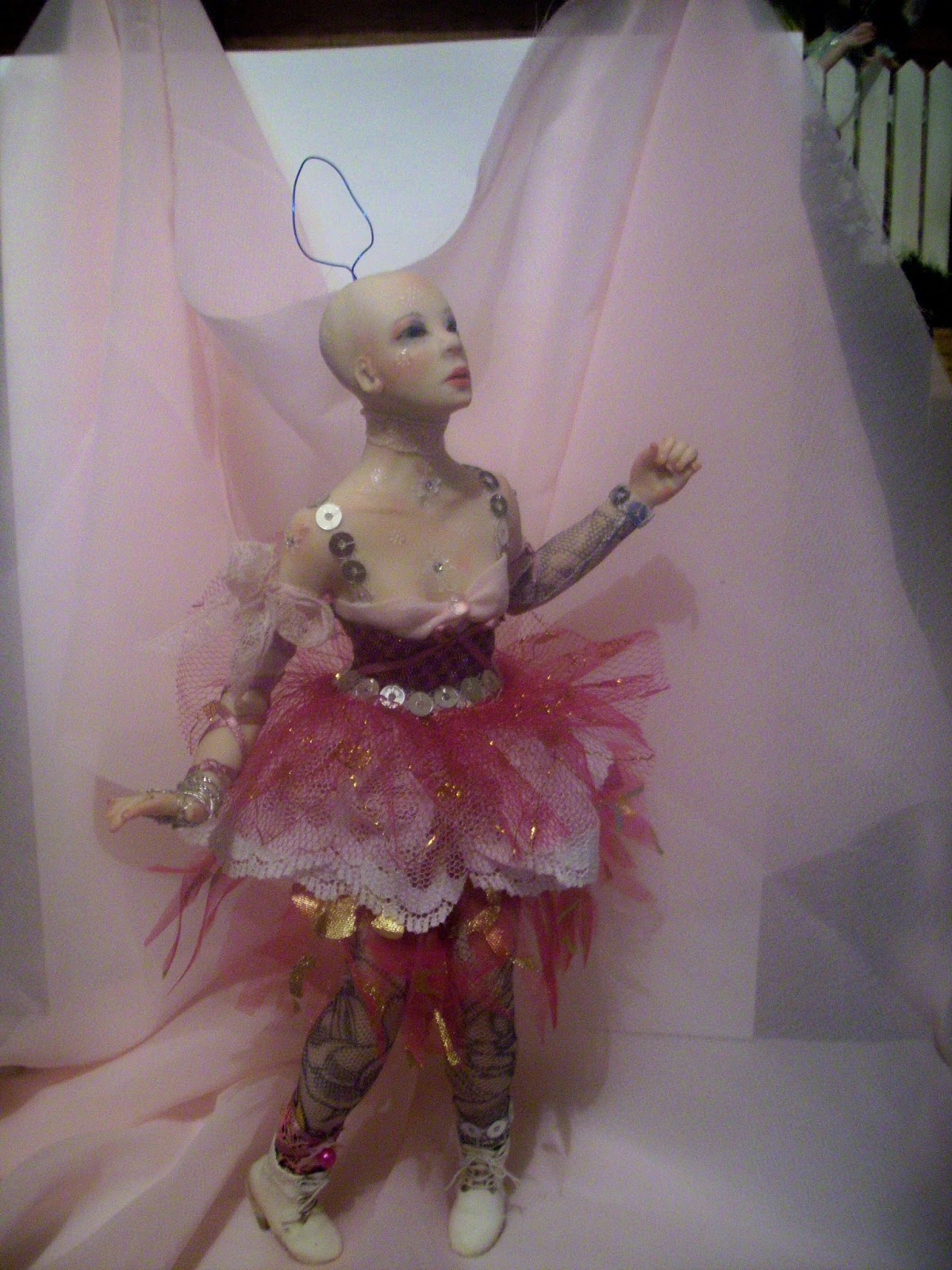 I have to thank two very unique, and wonderful artists for my shoe making abilities, Patricia Cabrera, Pat once told me how much collectors appreciate fine details like leather shoes, and she sent me a box of soft leather! This white leather was in that box! The laces were created using very small elastic! Worked great!Thank you Pat, I love you my sister :0 and secondly, Mr. Mark Dennis! Of course my skills do not compare (YET haha ) to Marks, but his tutorials on his blog, are so helpful for artists wanting to also learn the "art" of creating realistic, beautiful clothing, and shoes! Thank you Mark, your work is so inspiring, and Amazing!